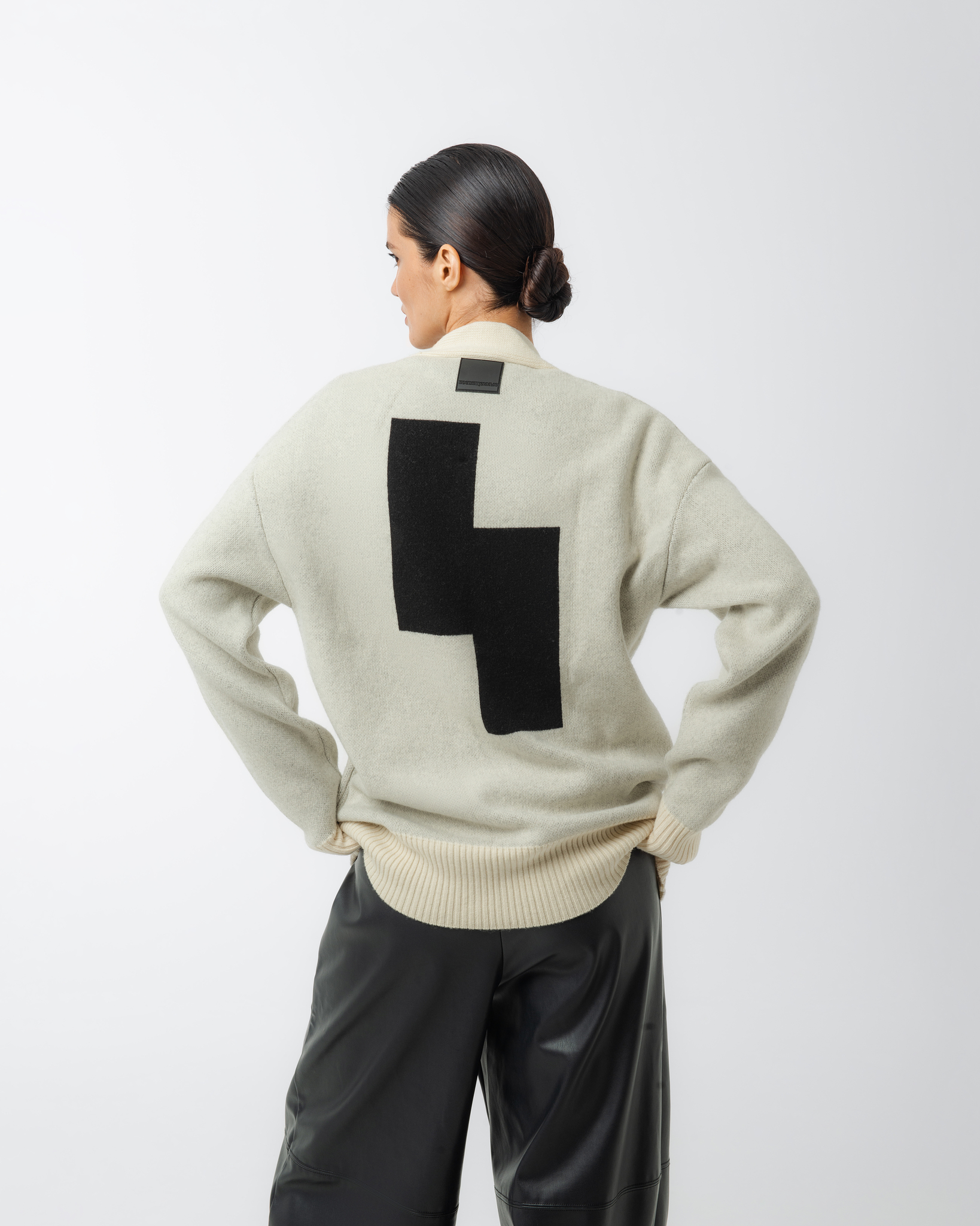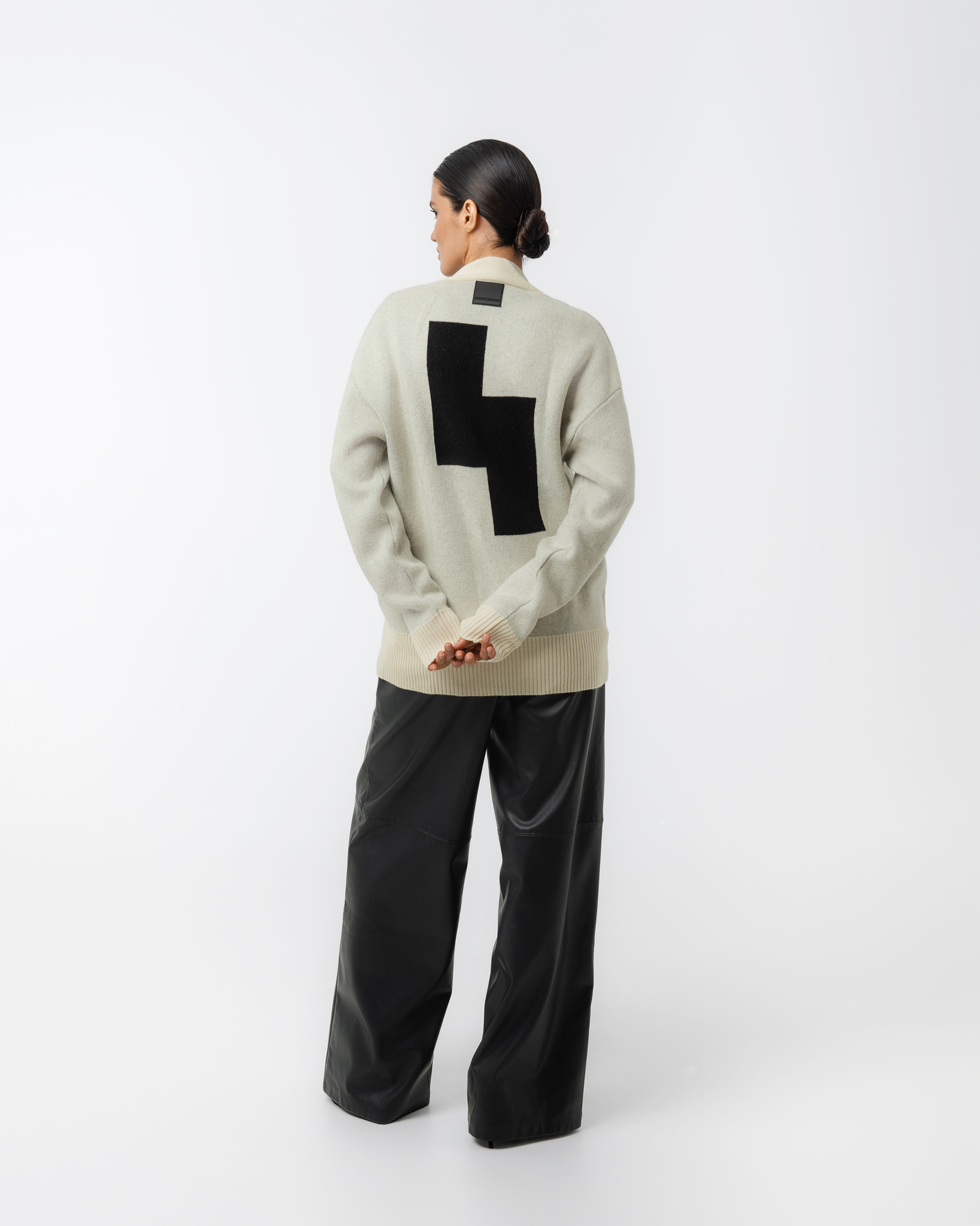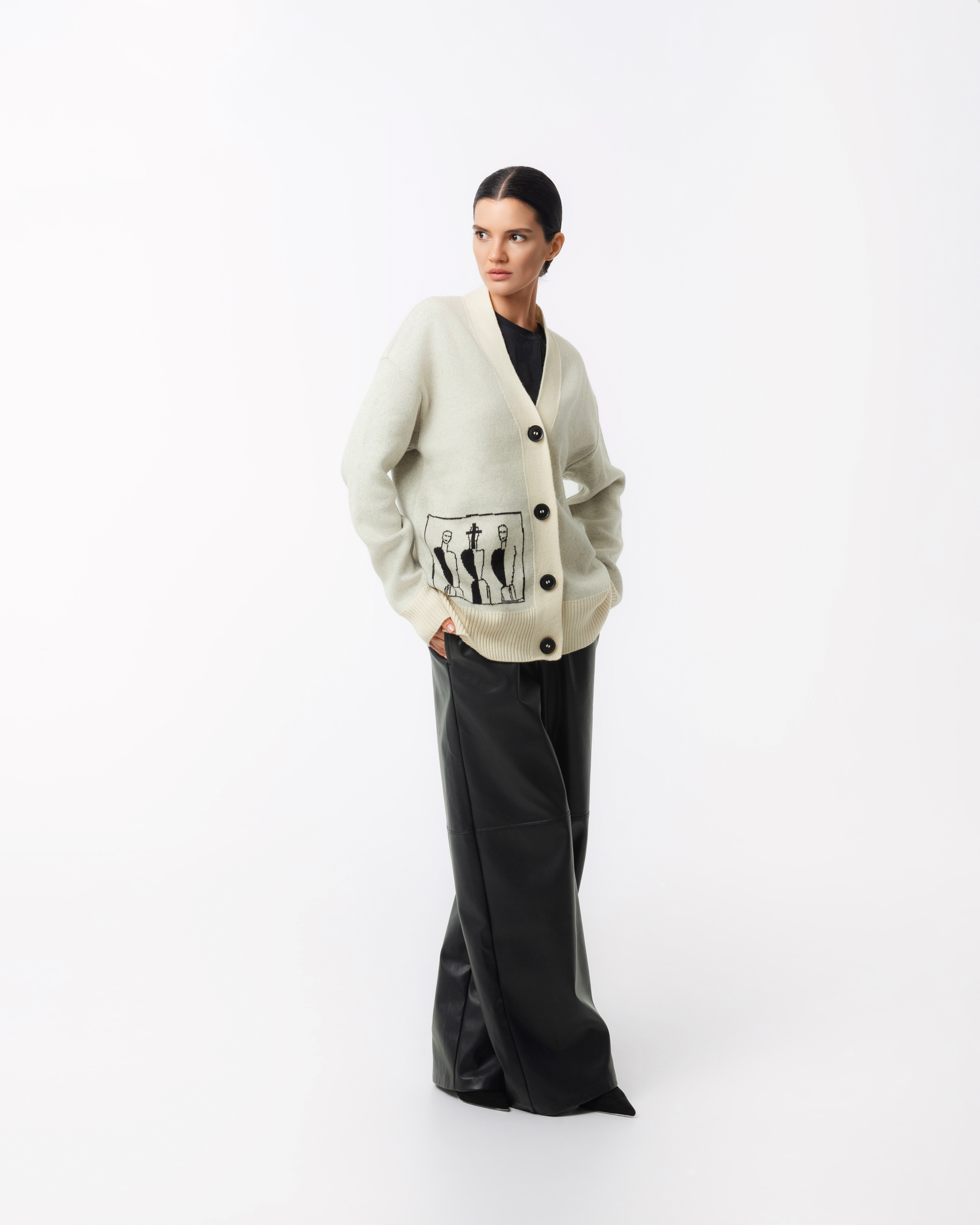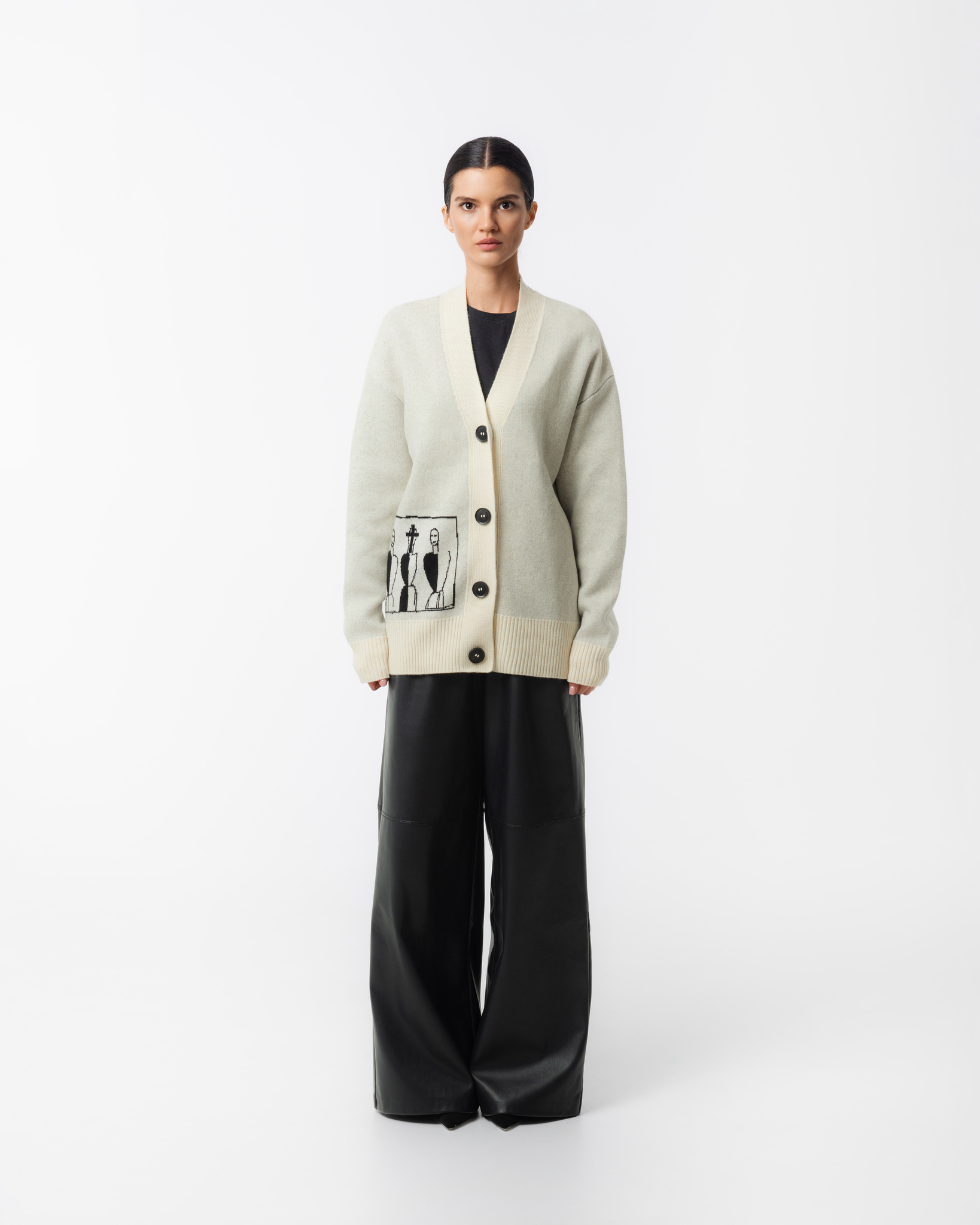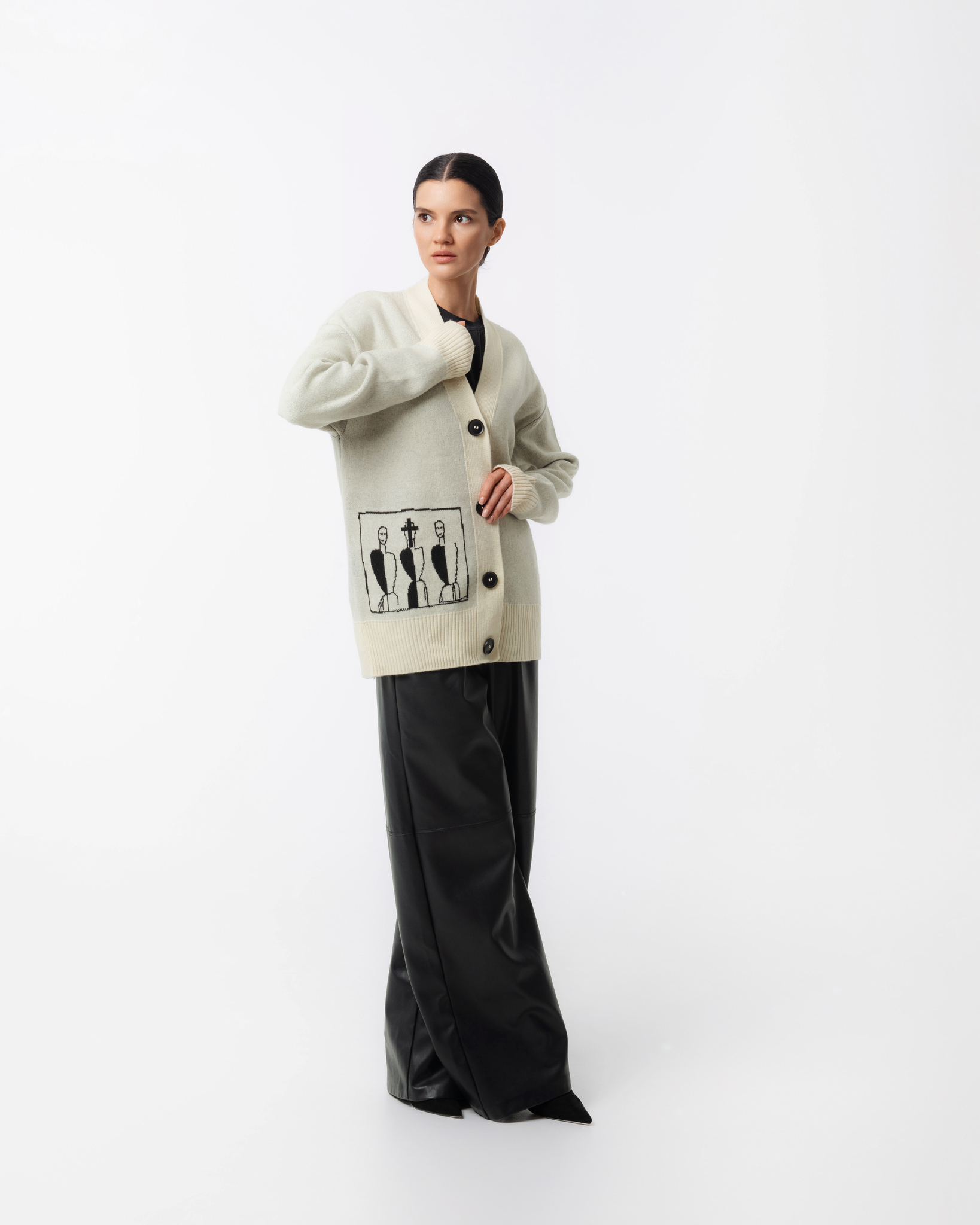 Кардиган «ПОСВЯЩЕННЫЕ» — это стильный и элегантный предмет гардероба, который станет настоящим украшением любого образа. Вдохновением для создания кардигана послужил «Чёрный квадрат» Казимира Малевича — символ авангардного искусства и простоты форм.