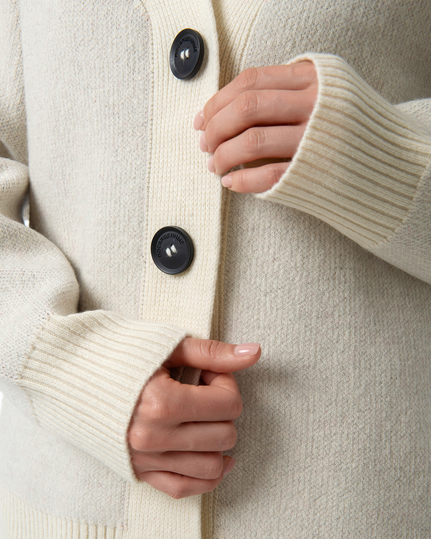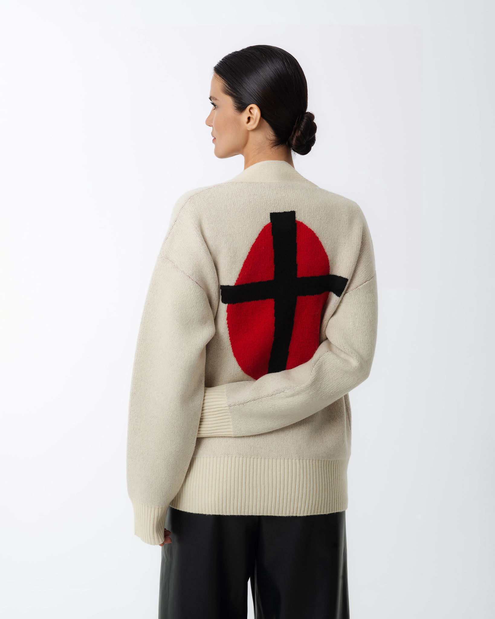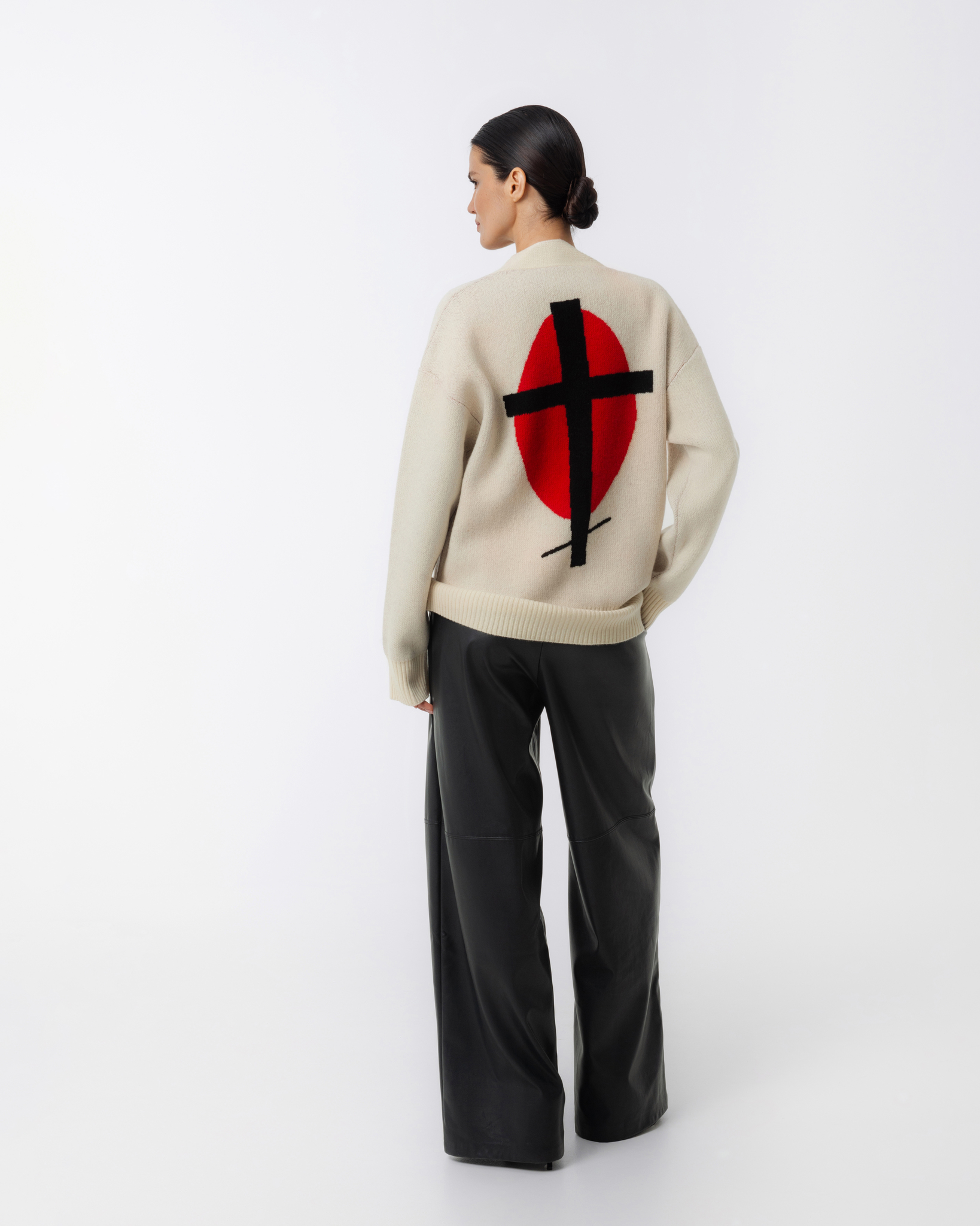 Кардиган «ПОСВЯЩЕННЫЕ» — это стильный и элегантный предмет гардероба, который станет настоящим украшением любого образа. Вдохновением для создания кардигана послужил «Чёрный квадрат» Казимира Малевича — символ авангардного искусства и простоты форм.