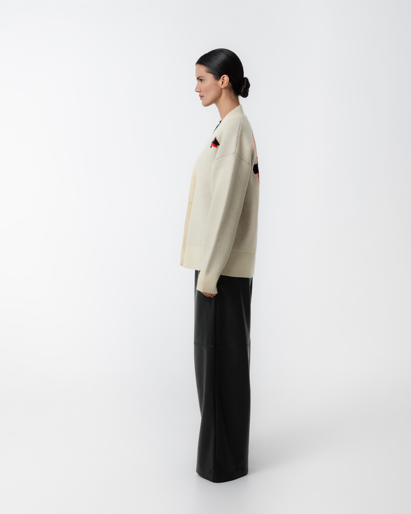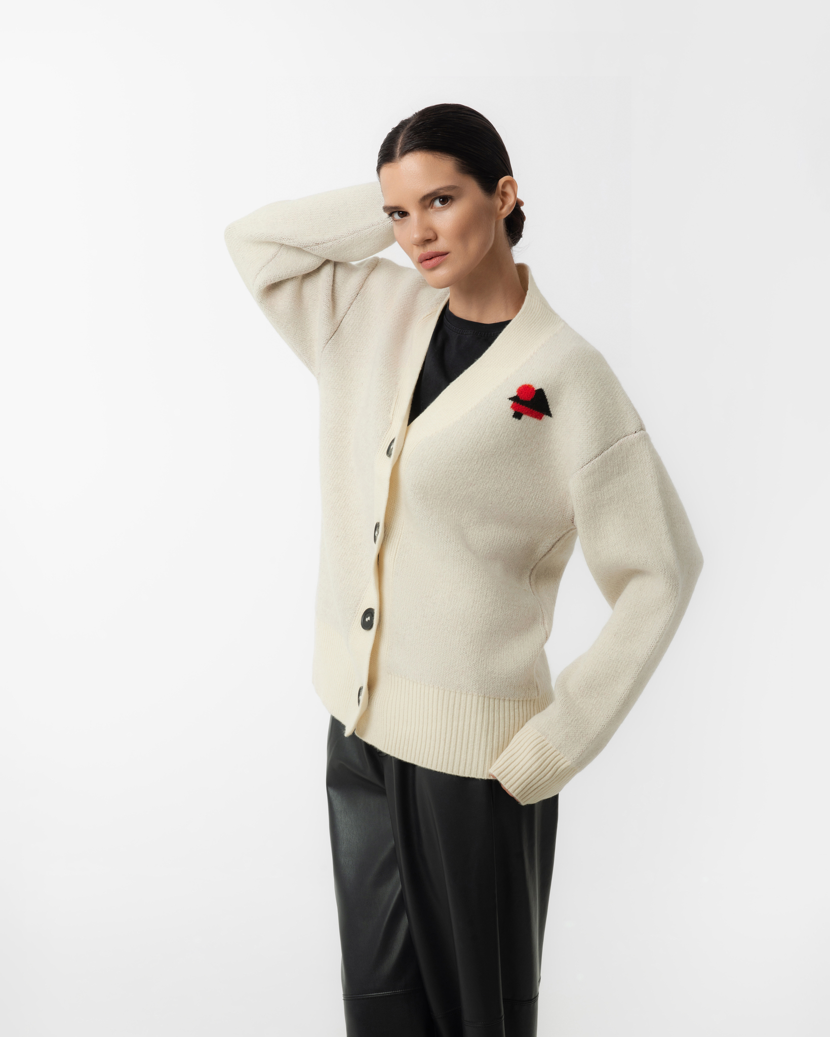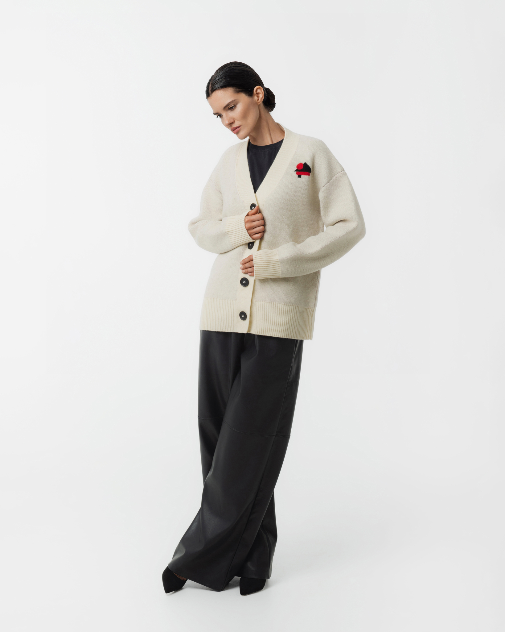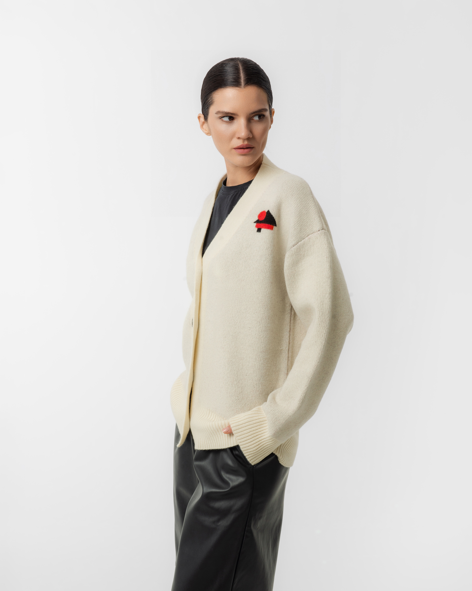 Кардиган «ПОСВЯЩЕННЫЕ» — это стильный и элегантный предмет гардероба, который станет настоящим украшением любого образа. Вдохновением для создания кардигана послужил «Чёрный квадрат» Казимира Малевича — символ авангардного искусства и простоты форм.