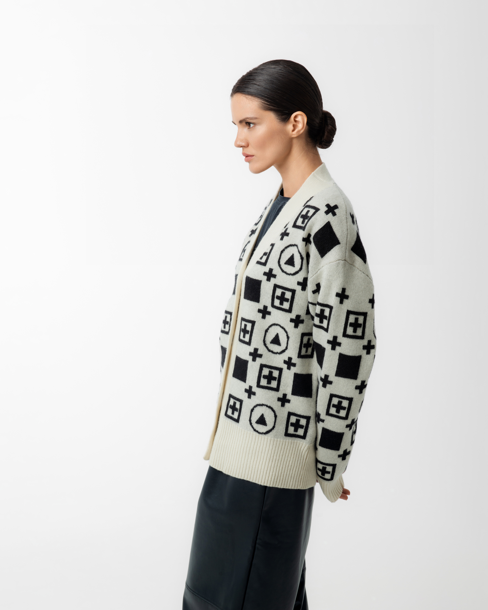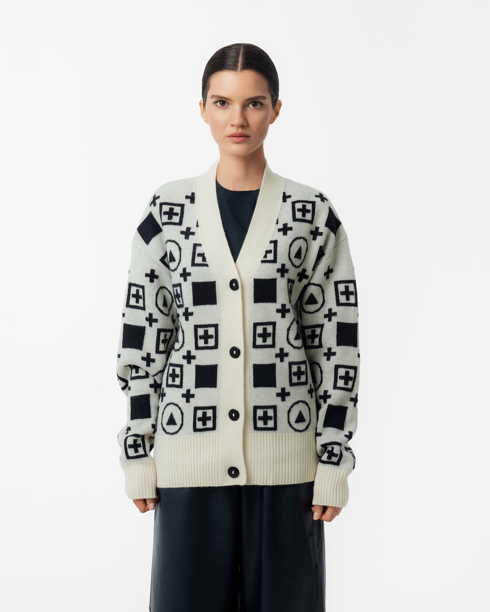Кардиган «ПОСВЯЩЕННЫЕ» — это стильный и элегантный предмет гардероба, который станет настоящим украшением любого образа. Вдохновением для создания кардигана послужил «Чёрный квадрат» Казимира Малевича — символ авангардного искусства и простоты форм.