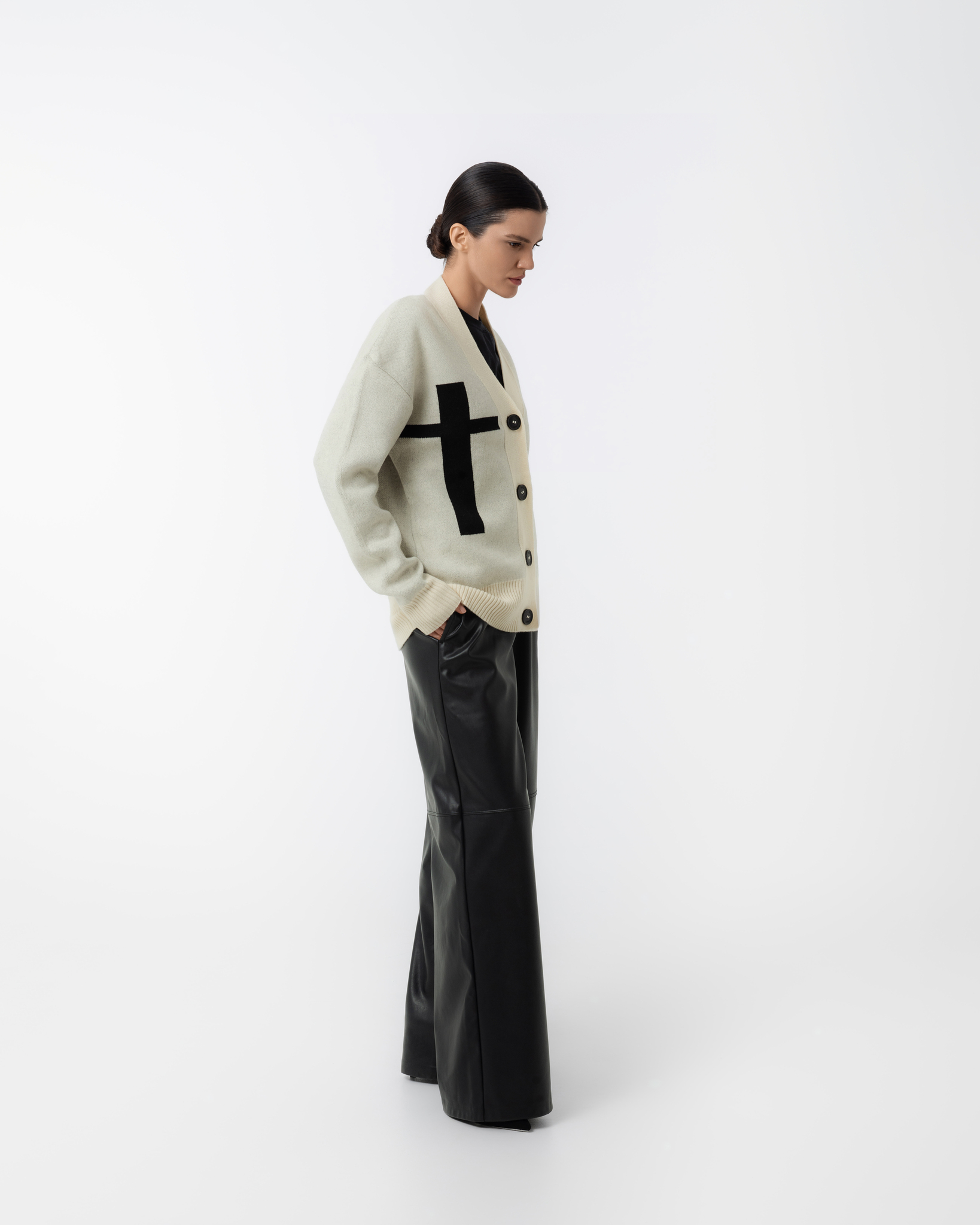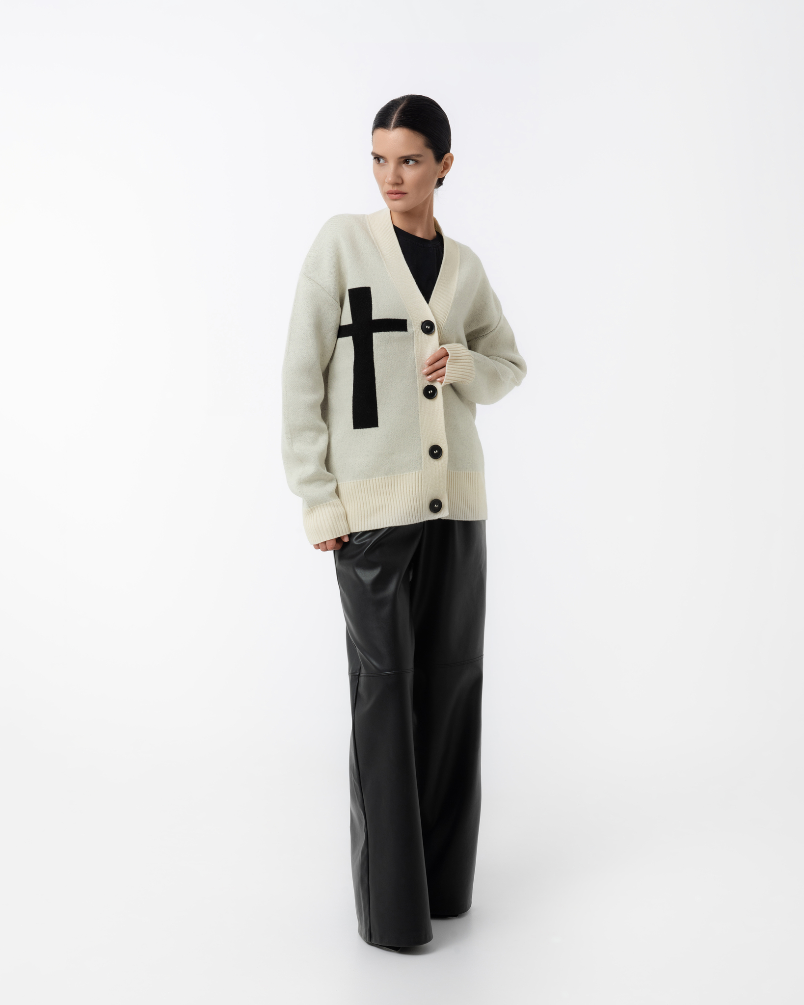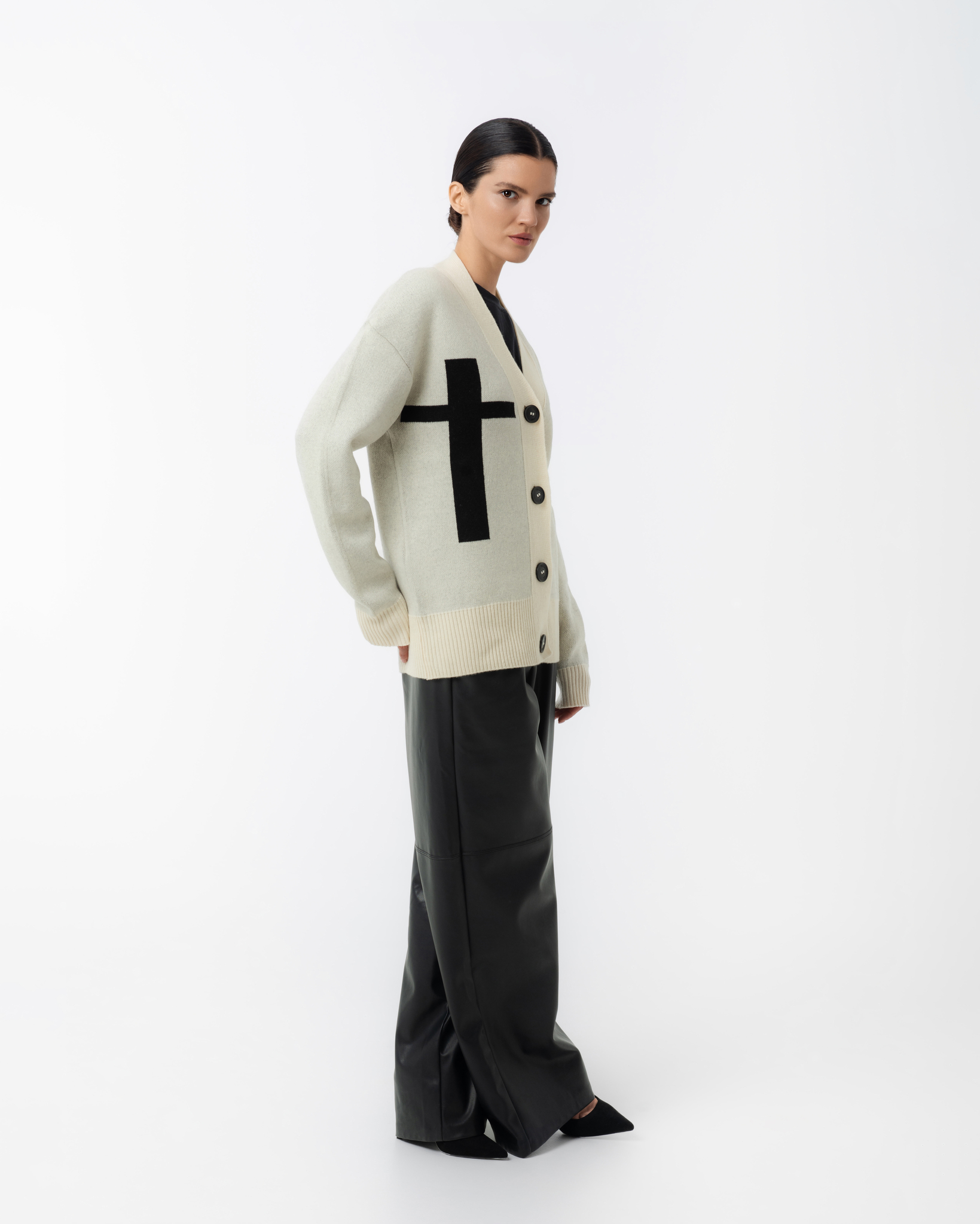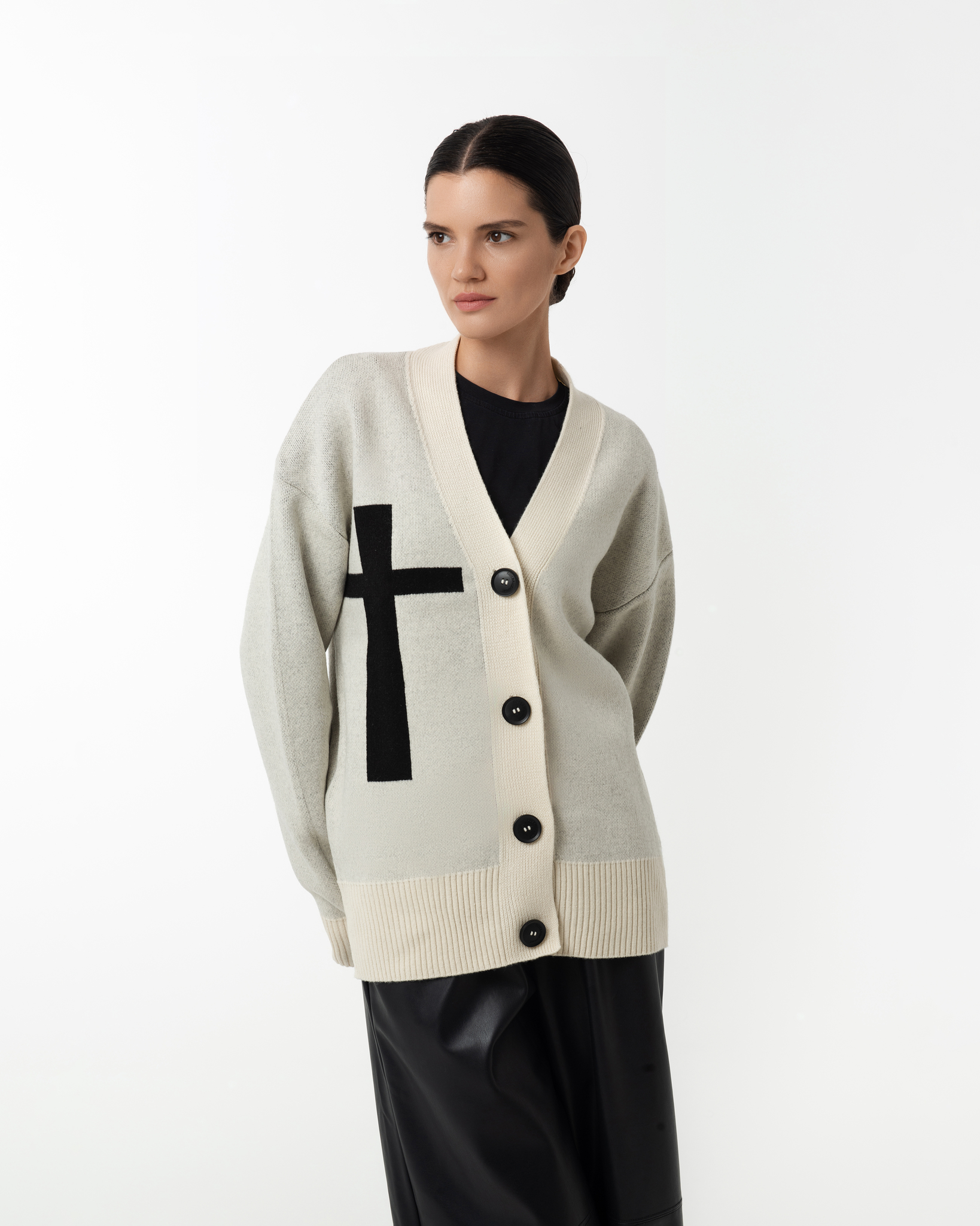 Кардиган «ПОСВЯЩЕННЫЕ» — это стильный и элегантный предмет гардероба, который станет настоящим украшением любого образа. Вдохновением для создания кардигана послужил «Чёрный квадрат» Казимира Малевича — символ авангардного искусства и простоты форм.