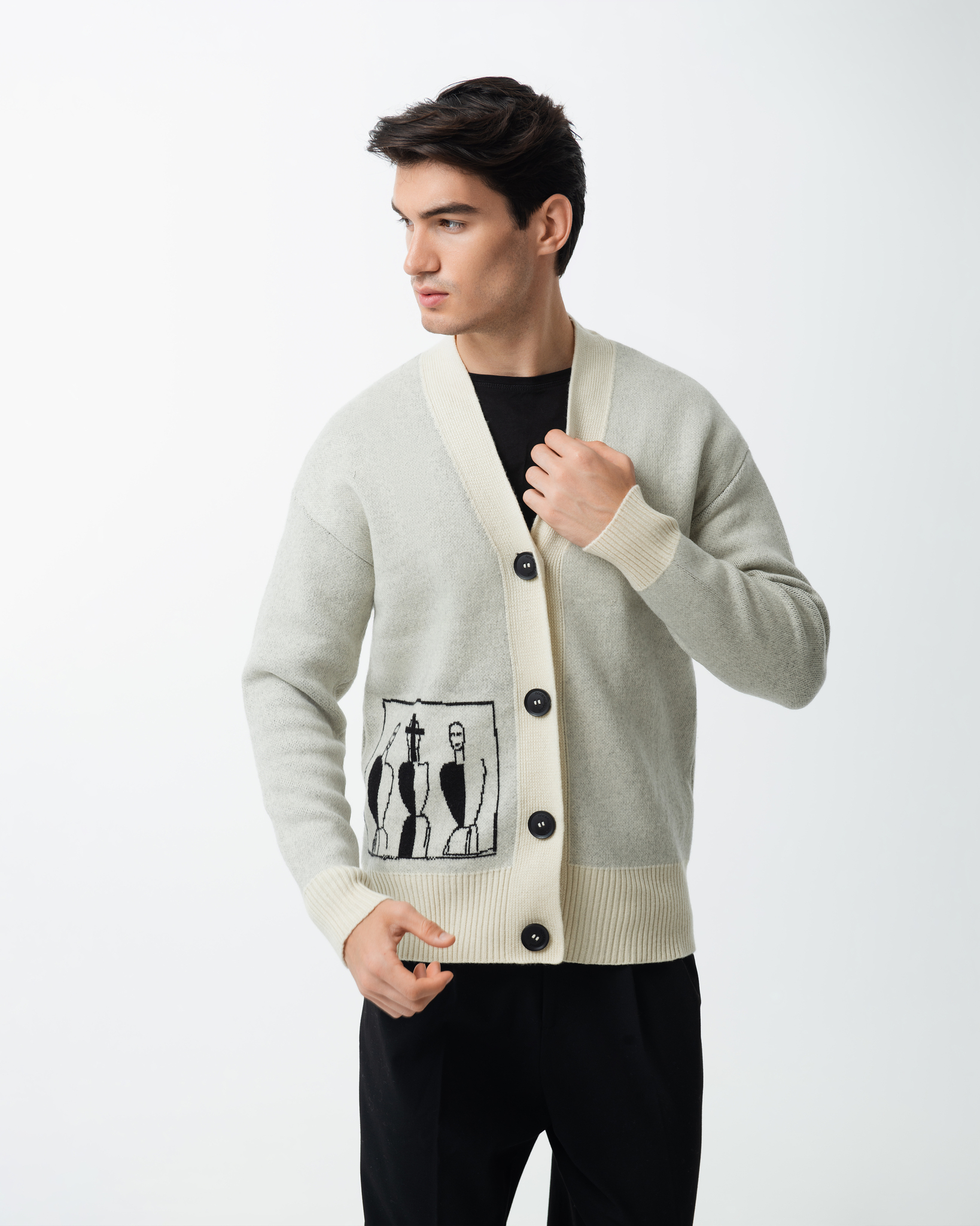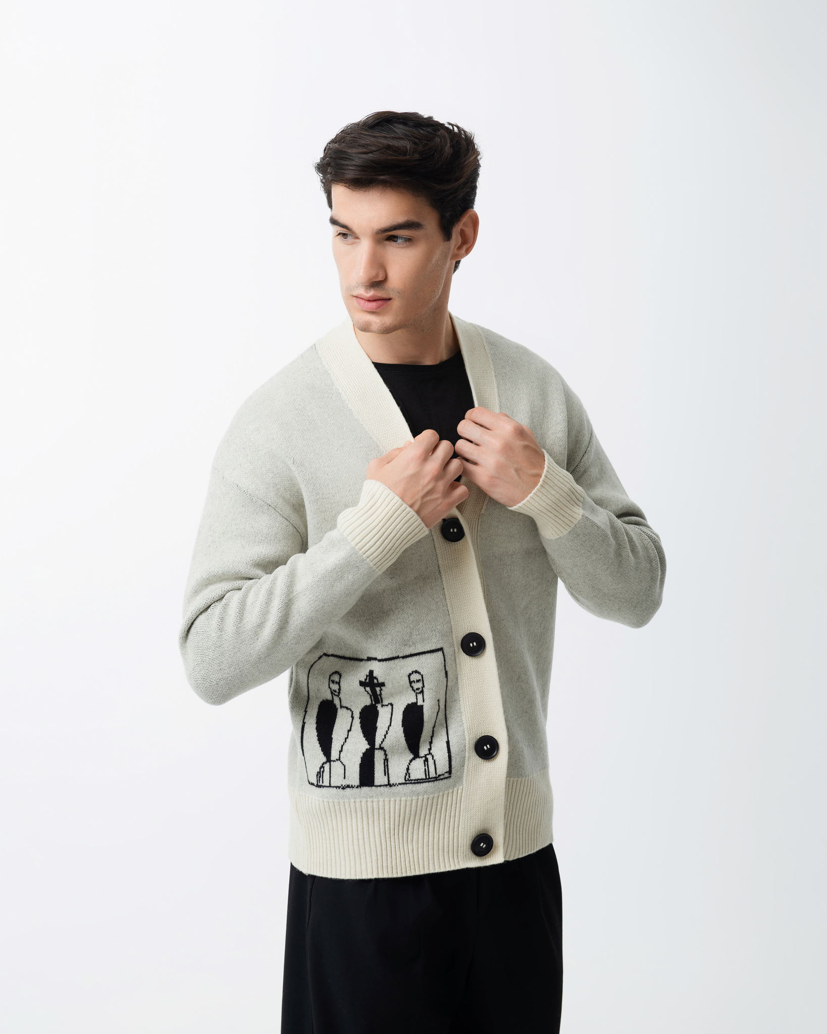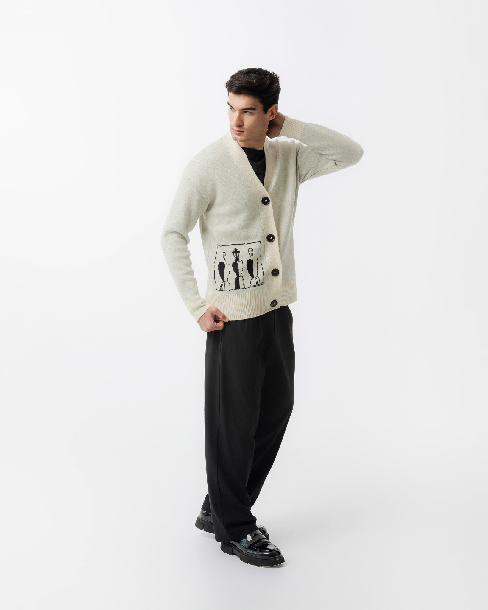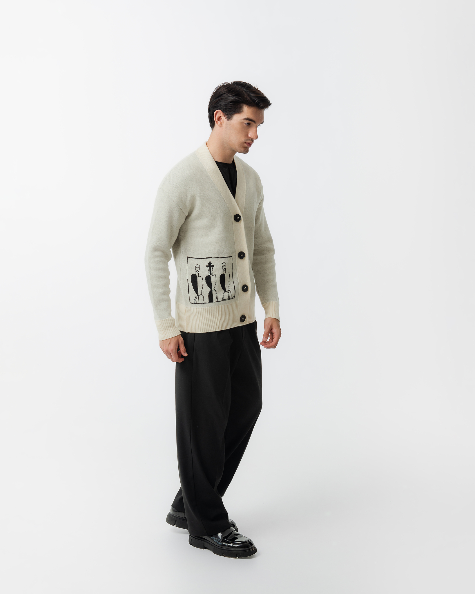 Кардиган «ПОСВЯЩЕННЫЕ» — это стильный и элегантный предмет гардероба, который станет настоящим украшением любого образа. Вдохновением для создания кардигана послужил «Чёрный квадрат» Казимира Малевича — символ авангардного искусства и простоты форм.