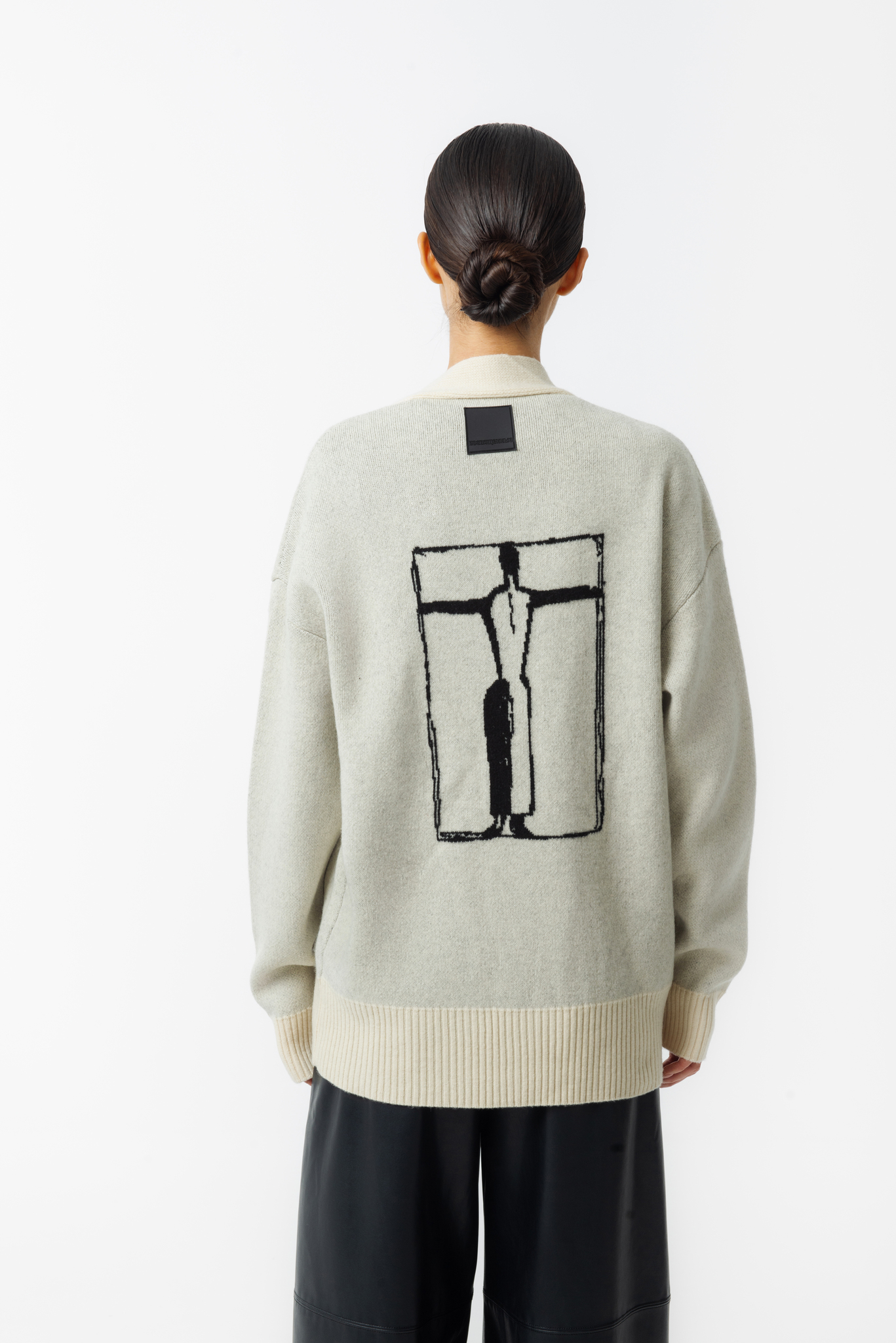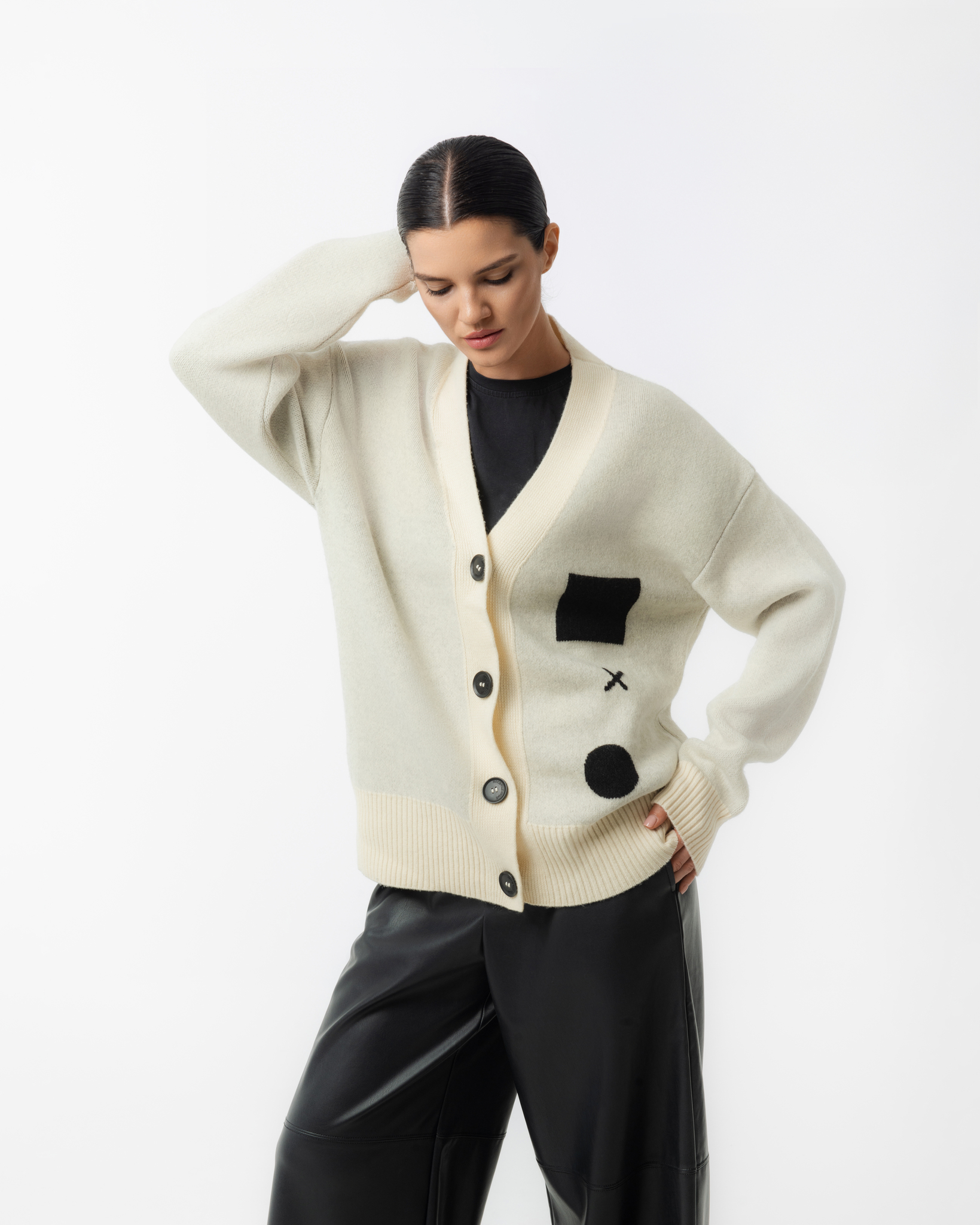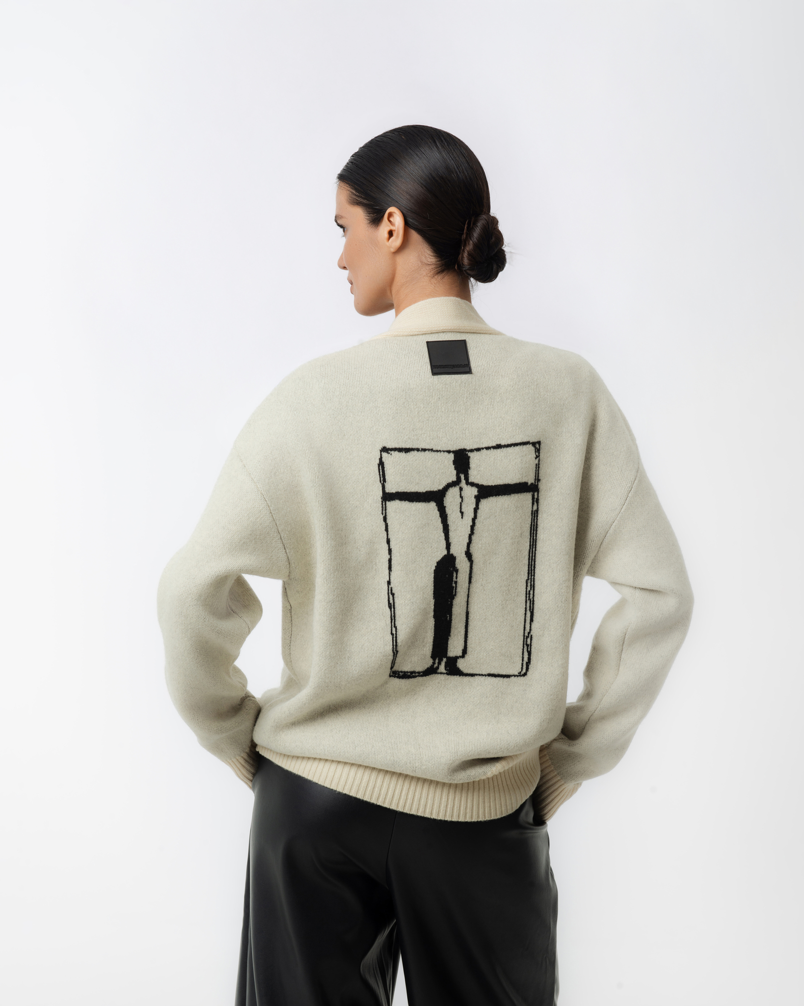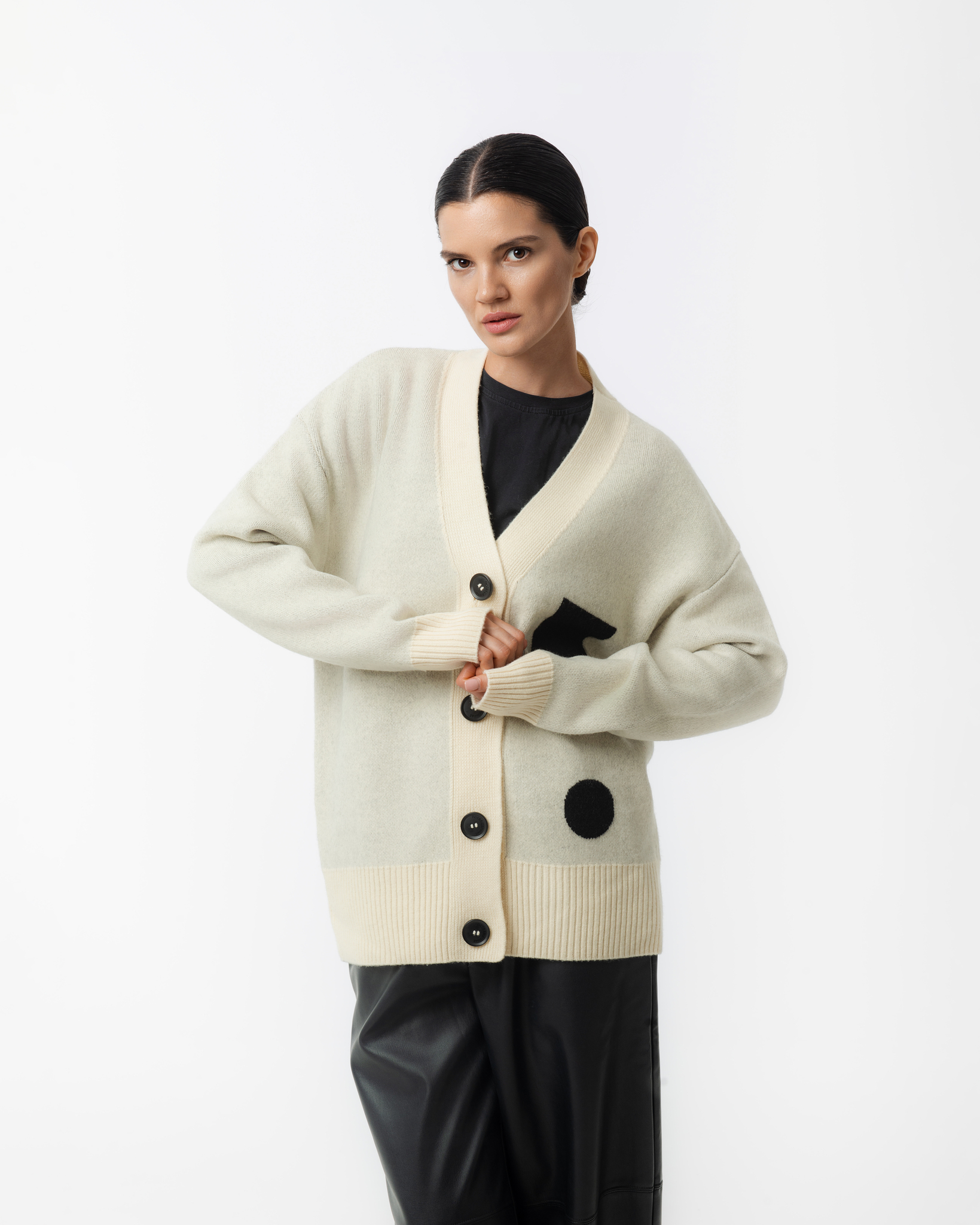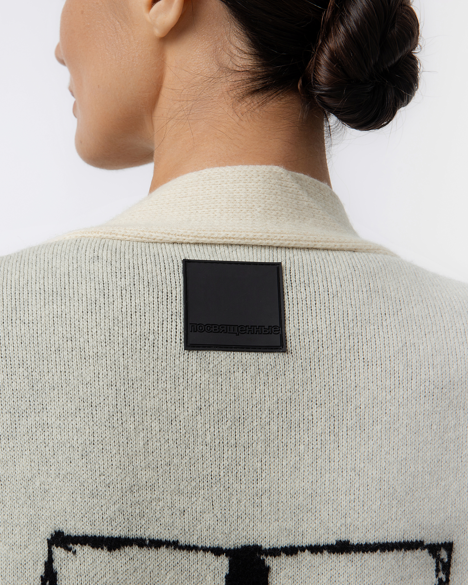 Кардиган «ПОСВЯЩЕННЫЕ» — это стильный и элегантный предмет гардероба, который станет настоящим украшением любого образа. Вдохновением для создания кардигана послужил «Чёрный квадрат» Казимира Малевича — символ авангардного искусства и простоты форм.