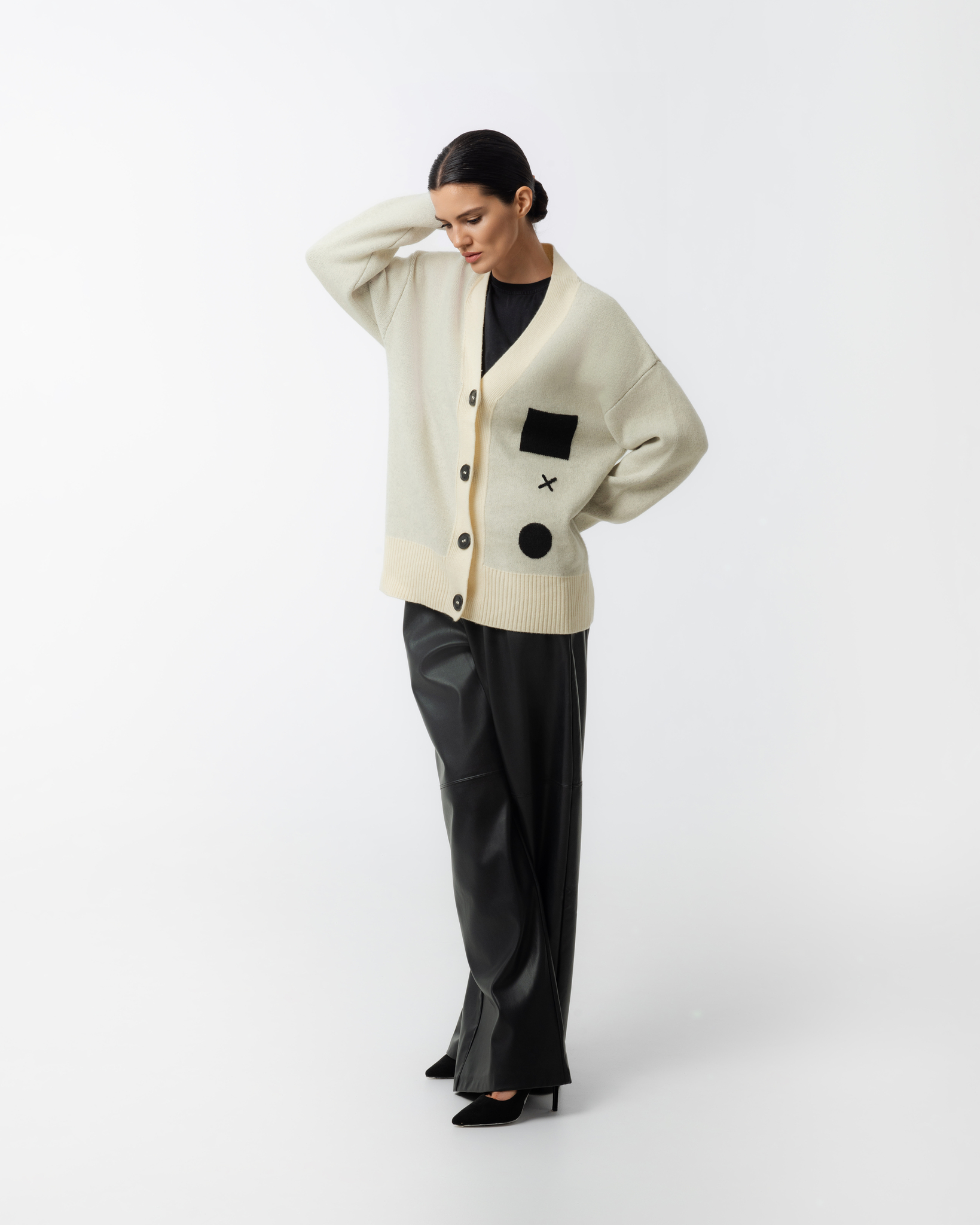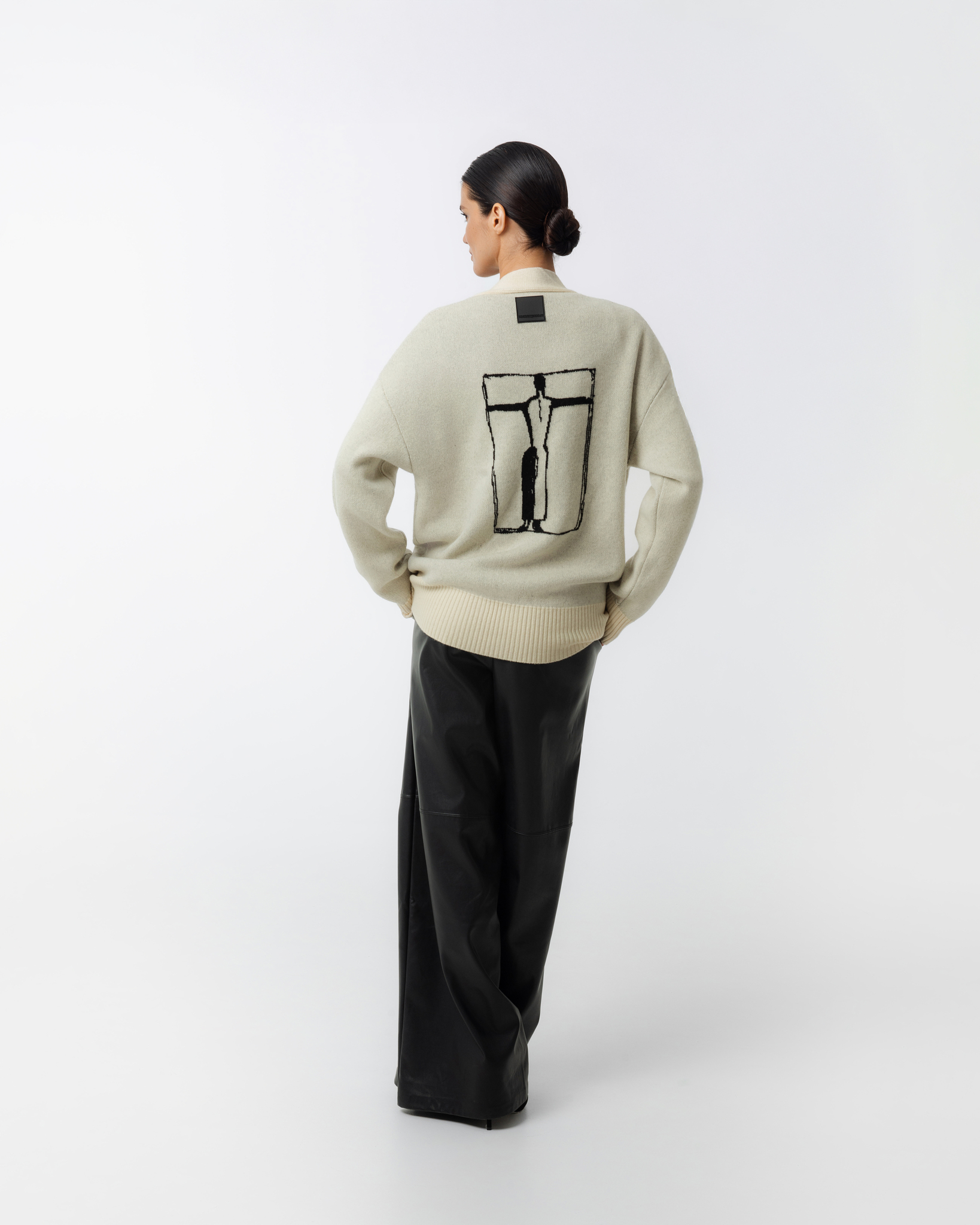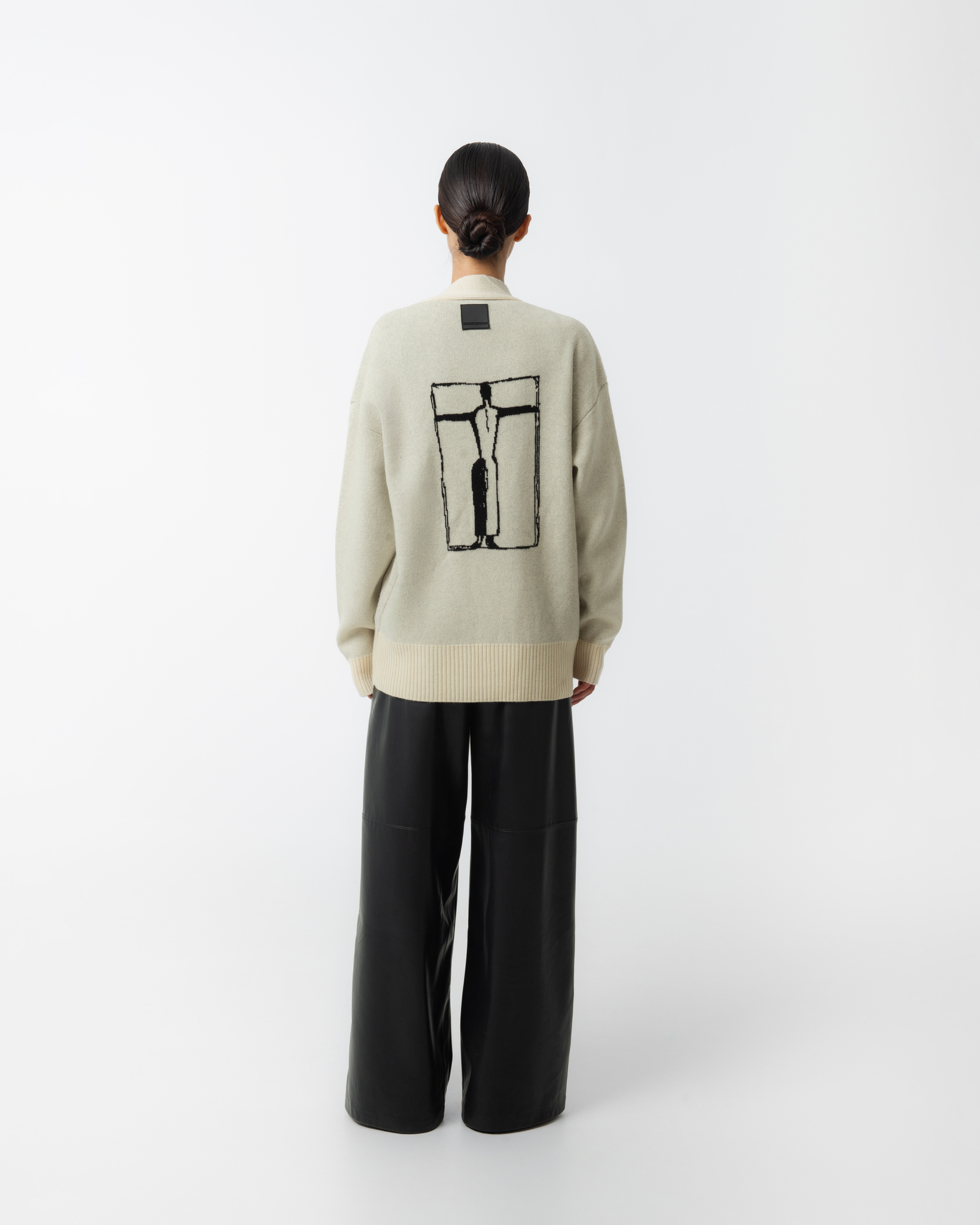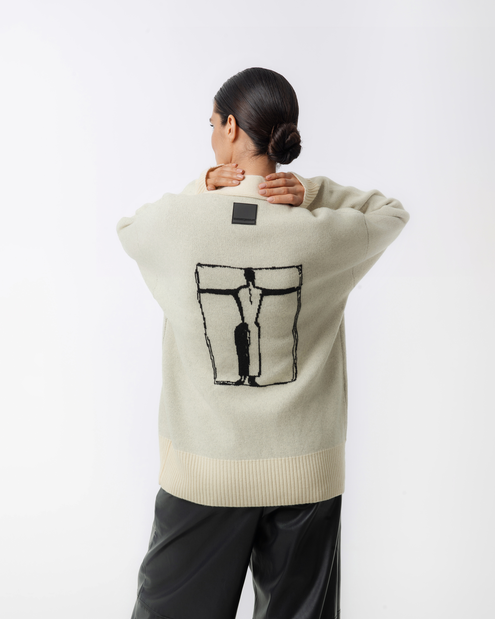 Кардиган «ПОСВЯЩЕННЫЕ» — это стильный и элегантный предмет гардероба, который станет настоящим украшением любого образа. Вдохновением для создания кардигана послужил «Чёрный квадрат» Казимира Малевича — символ авангардного искусства и простоты форм.