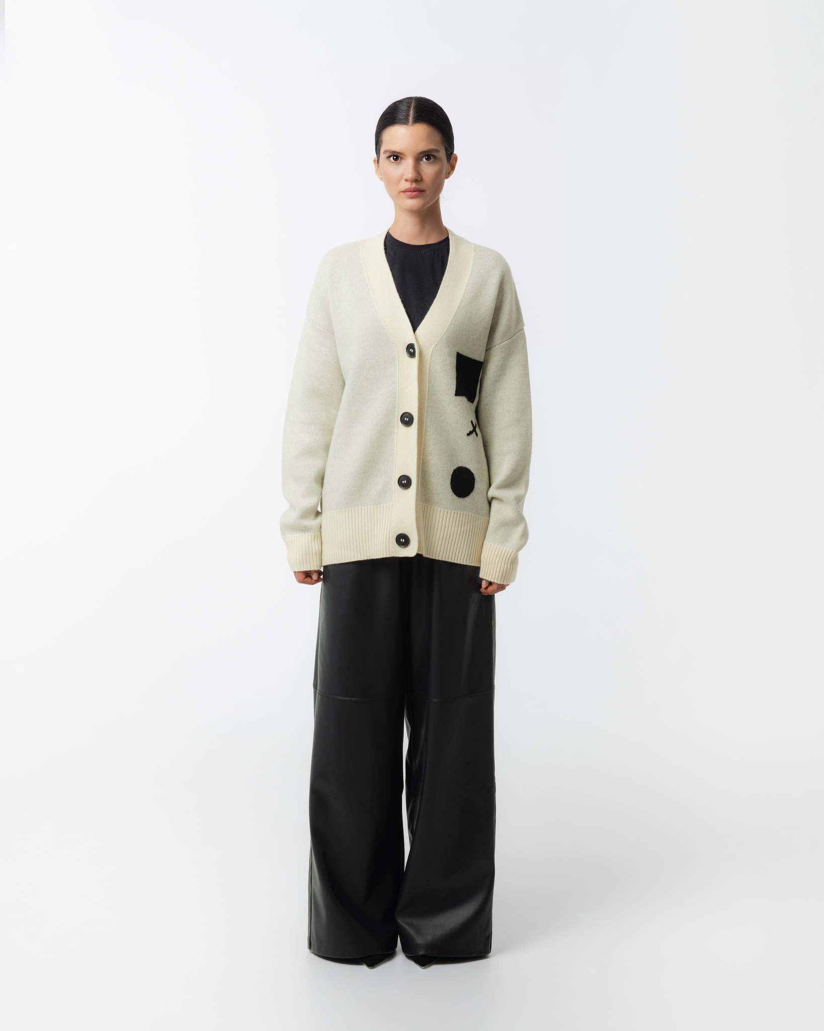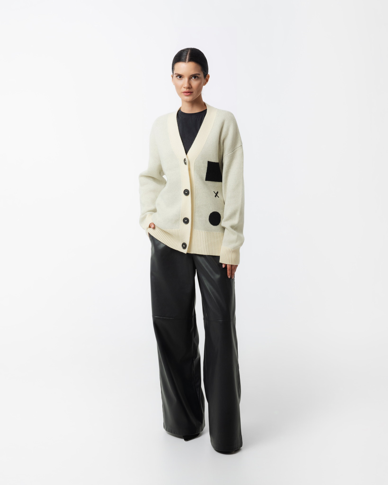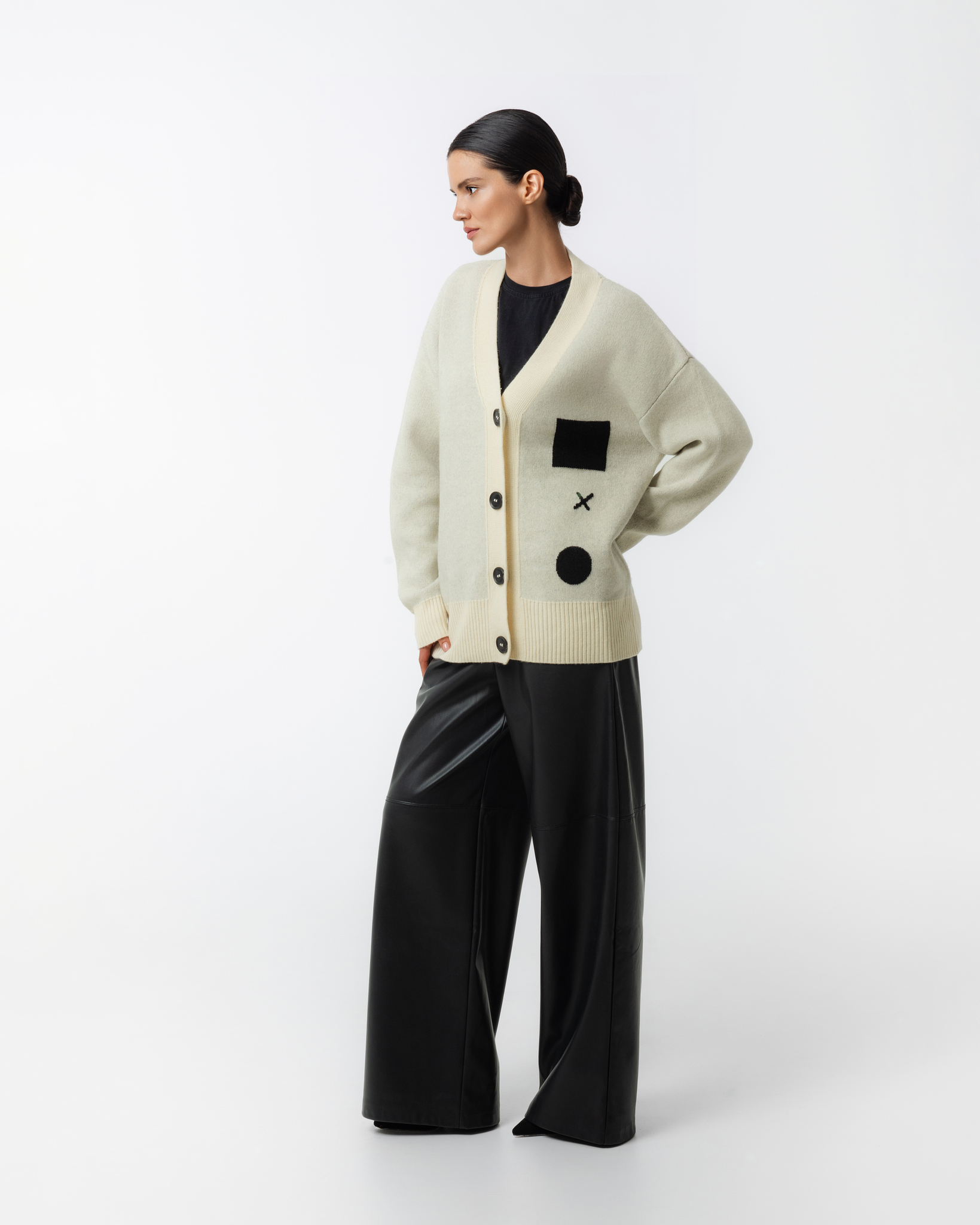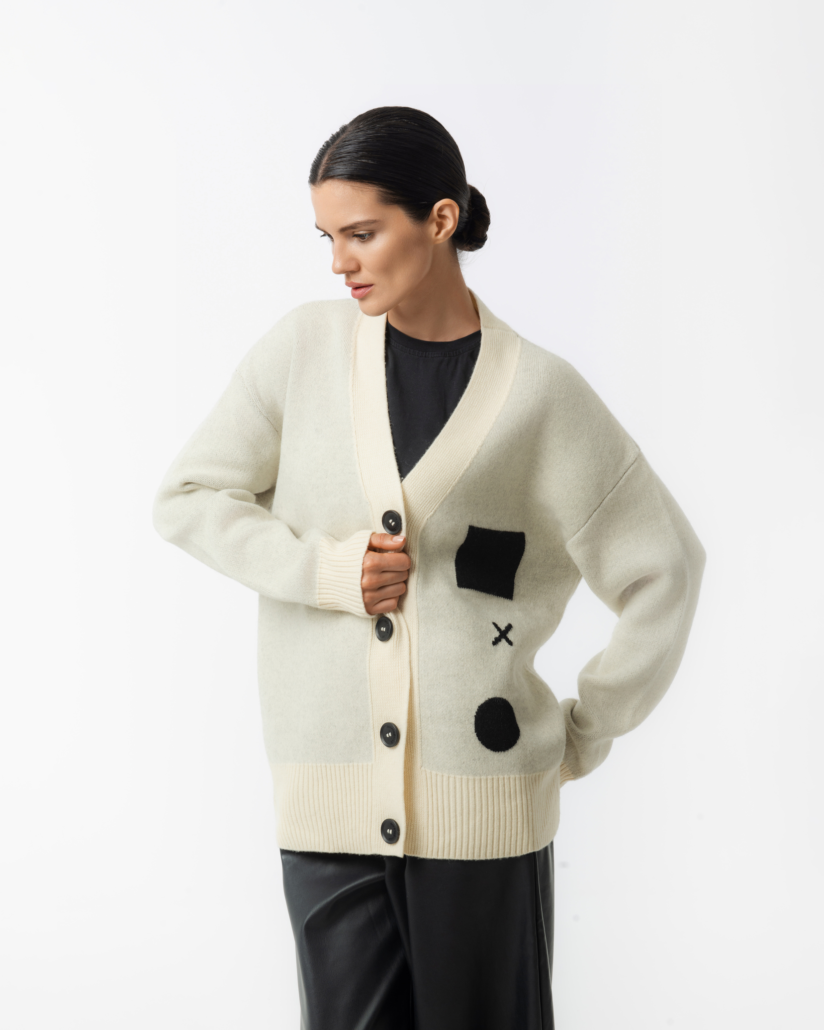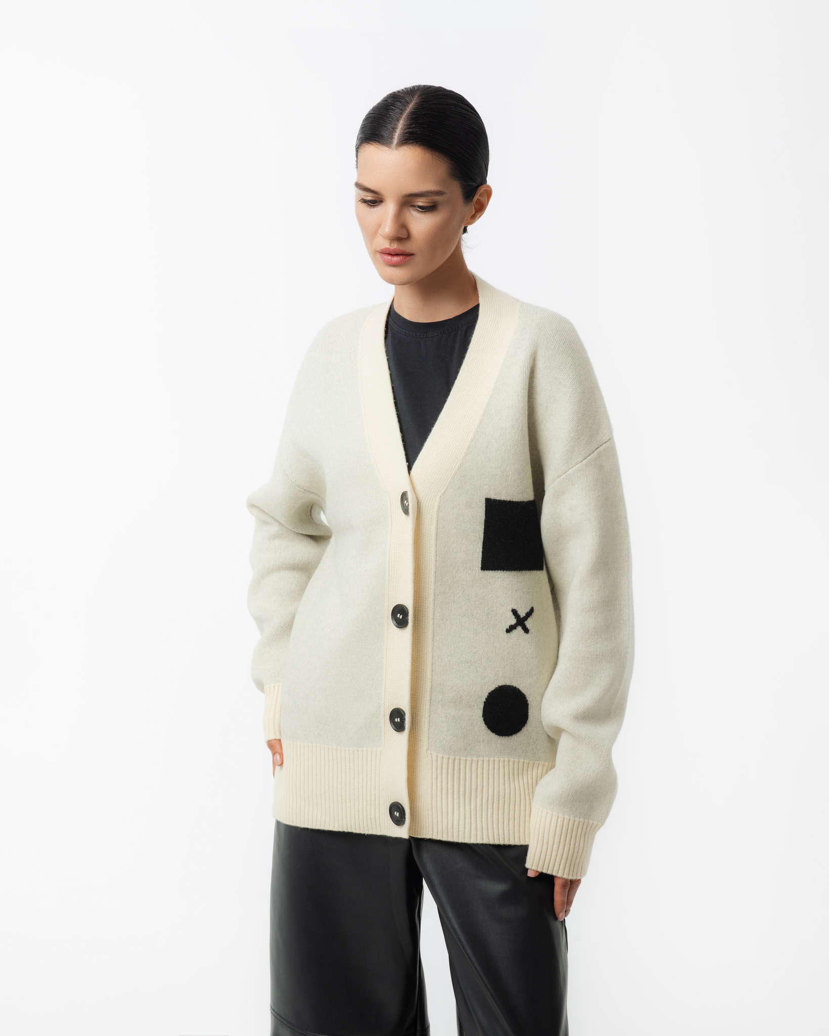 Кардиган «ПОСВЯЩЕННЫЕ» — это стильный и элегантный предмет гардероба, который станет настоящим украшением любого образа. Вдохновением для создания кардигана послужил «Чёрный квадрат» Казимира Малевича — символ авангардного искусства и простоты форм.